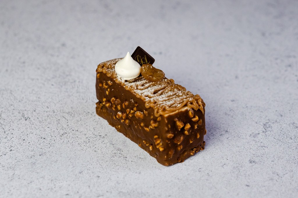 L’Ardéchois : Hommage gourmand aux saveurs de saison, L’Ardéchois marie avec délicatesse la douceur de la châtaigne et la fraîcheur acidulée de la myrtille. Sous une mousse onctueuse à la châtaigne, se dévoilent un crémeux châtaigne fondant, une marmelade de myrtille vibrante de fraîcheur, un biscuit moelleux et un croustillant châtaigne subtilement doré.