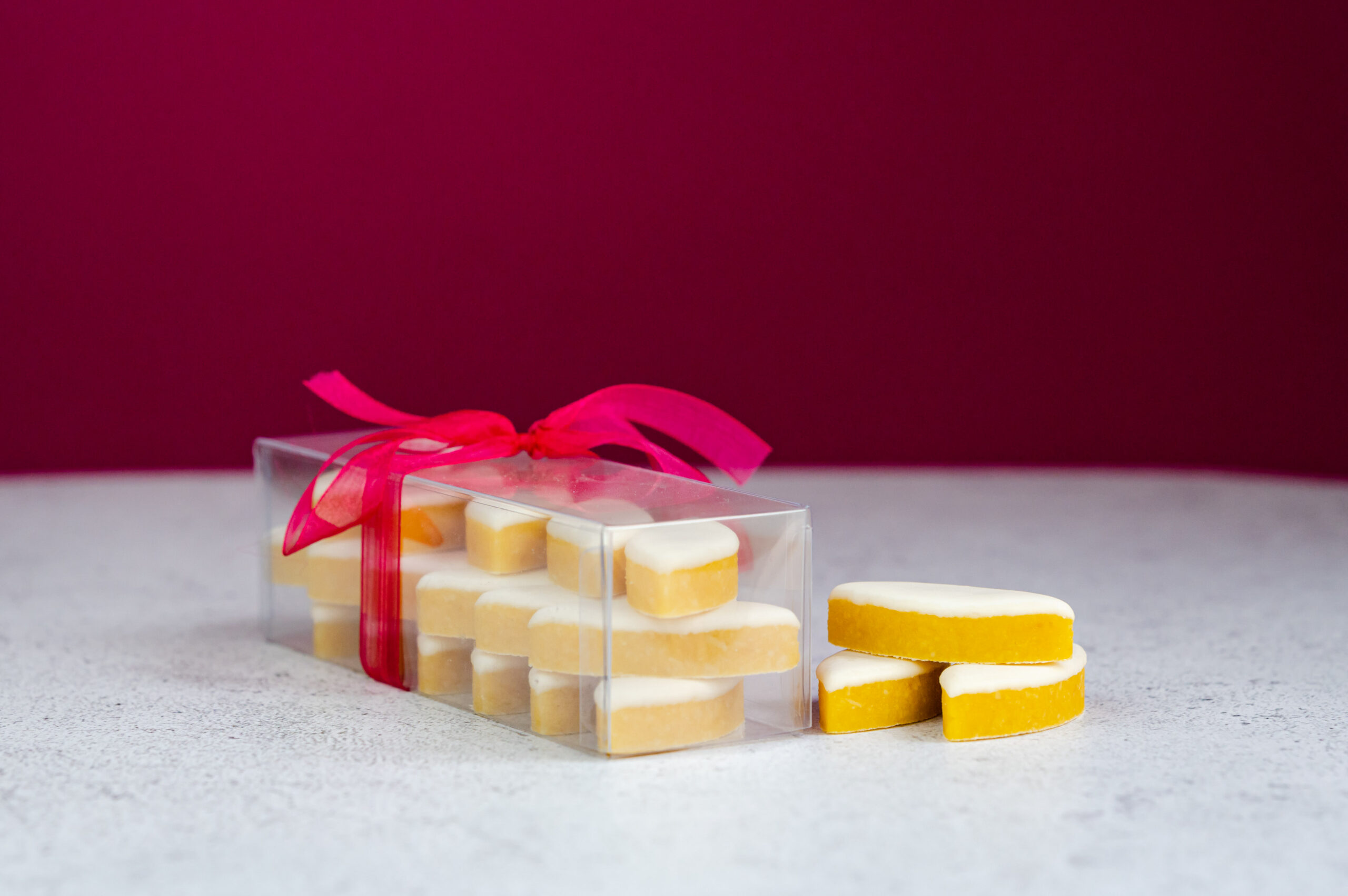 Calissons : Délicatement façonnés à la main, nos calissons marient pâte d’amande fondante et fine couche de melon confit, pour un équilibre subtil entre douceur et tradition provençale.