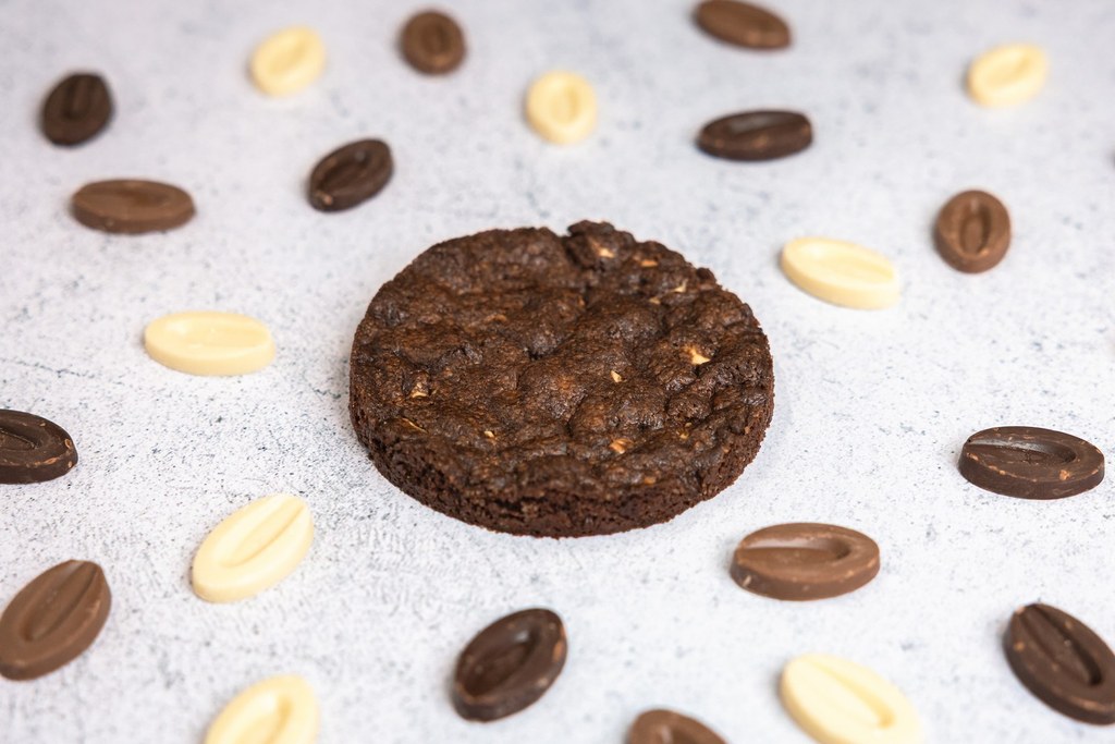 Cookie Trois Chocolats : Un cookie fondant et généreux, mêlant chocolat noir, lait et blanc pour une explosion de saveurs gourmandes.