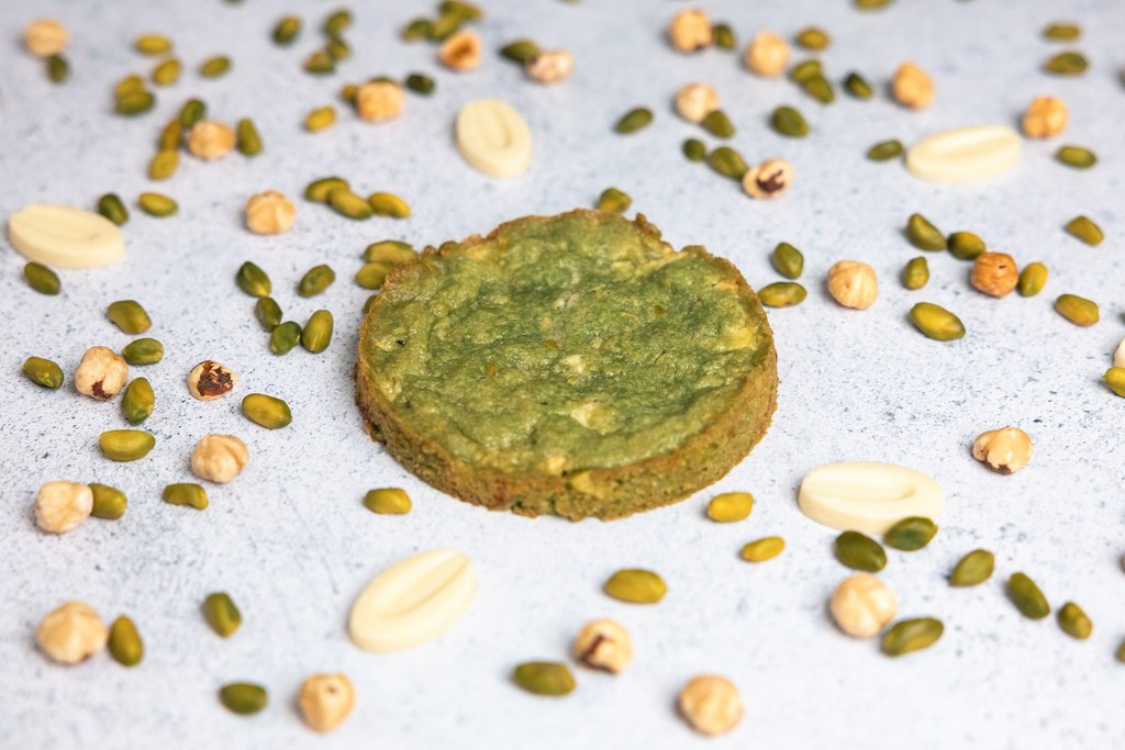 Cookie Pistache : Un cookie artisanal au coeur fondant, sublimé par la douceur de la pistache et des éclats croquants.