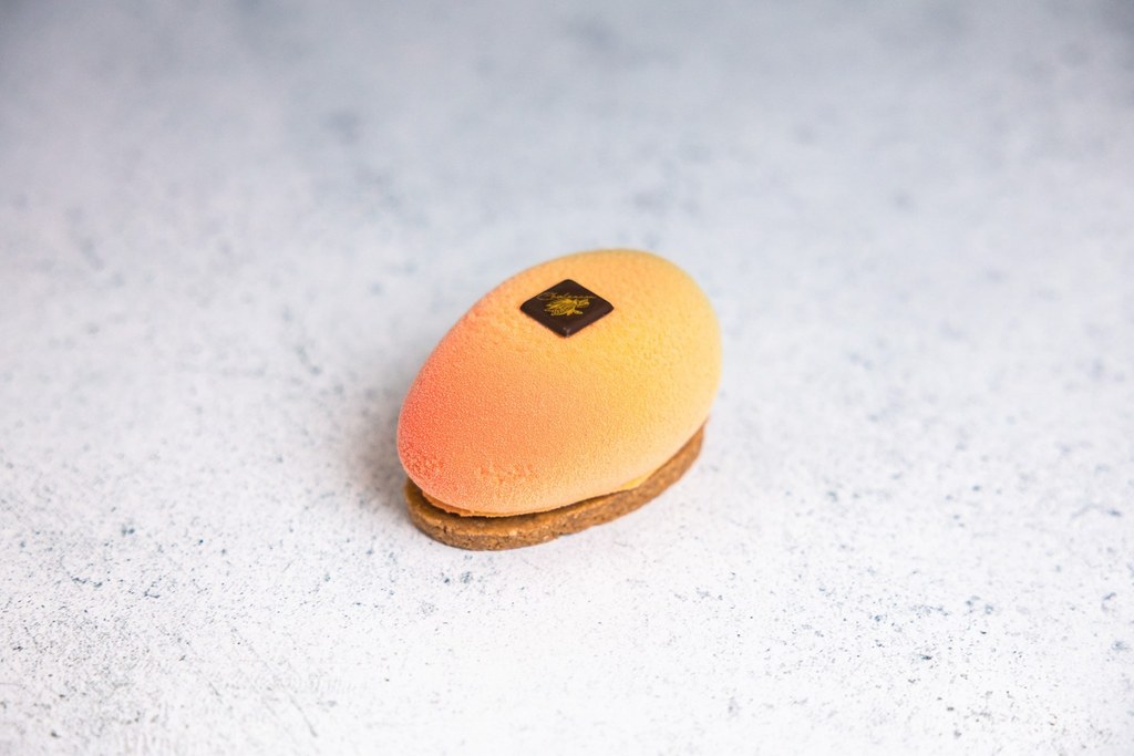 Mangue en trompe-l’oeil : sous son apparence de fruit frais se cache une création envoûtante : une mousse légère à la mangue, une marmelade acidulée, un biscuit moelleux au citron vert et un croustillant coco. Un dessert exotique, frais et surprenant, qui mêle douceur et vivacité.