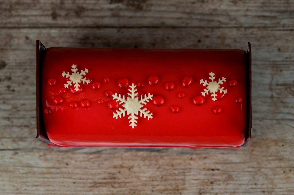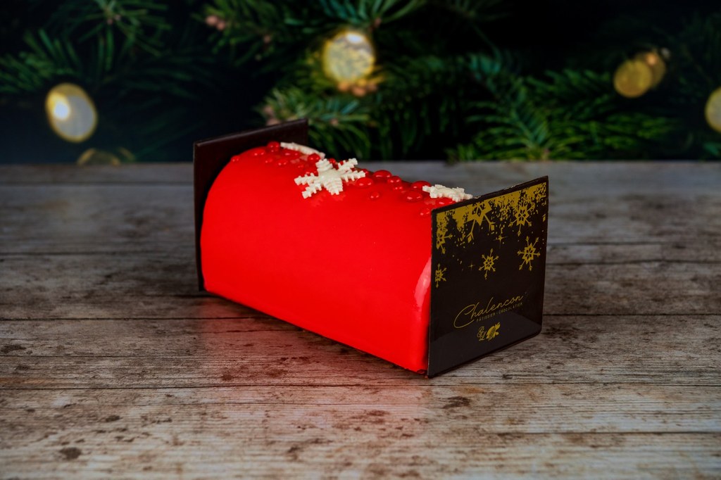 Bûche rouge baiser : Éclatante et gourmande, la bûche Rouge Baiser célèbre la magie de Noël avec un crémeux fraise et sa marmelade fruitée, un biscuit cake délicatement citronné, un croustillant amande et une mousse vanille tout en douceur. Un dessert raffiné, plein de fraîcheur et d’élégance pour sublimer vos fêtes !