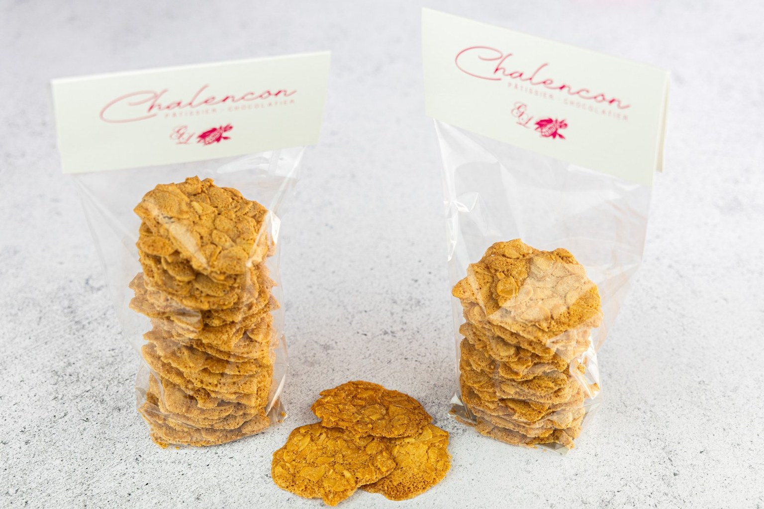 Tuiles aux amandes artisanale : Fine et croustillante, cette tuile réalisée artisanalement révèle toute la délicatesse des amandes finement torréfiées. Une gourmandise légère et raffinée, parfaite pour accompagner un café ou une pause sucrée.